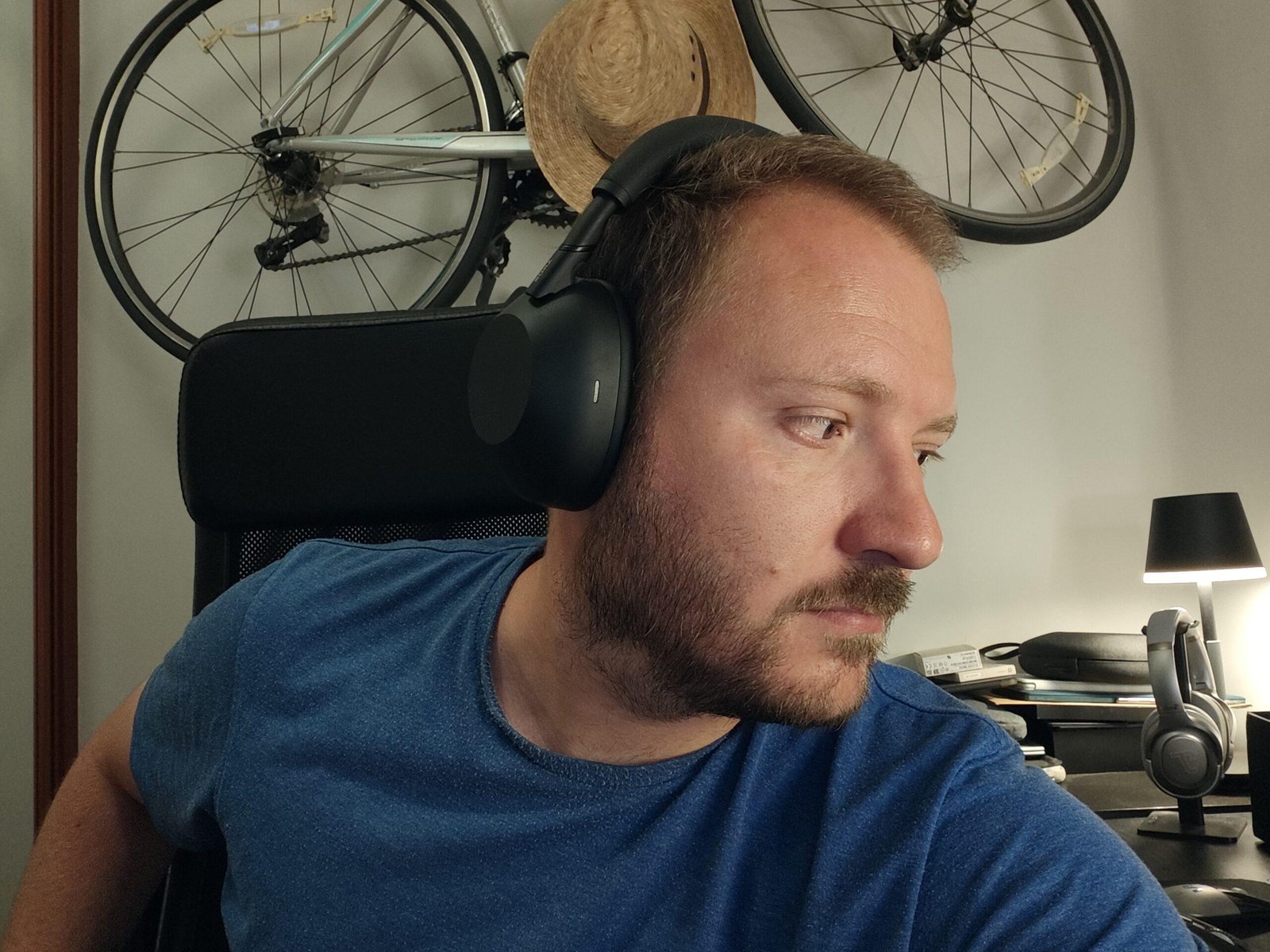 Pero la mejora en el día a día no se queda ahí. Al cogerlos, la primera sensación es de ligereza. Con un peso de solo 254 gramos, apenas se notan en la cabeza. La diadema, ahora más fina y con un acolchado más blando, distribuye la presión de forma uniforme, eliminando ese punto de molestia en la coronilla tras horas de uso. Las almohadillas también han sido rediseñadas; las noto más amplias y fabricadas en un cuero sintético más suave que mejora la transpiración. El resultado es que he podido llevarlos durante jornadas de trabajo de ocho horas y luego seguir con ellos para ver una película, olvidando por completo que los tenía puestos. Cero fatiga, cero calor.