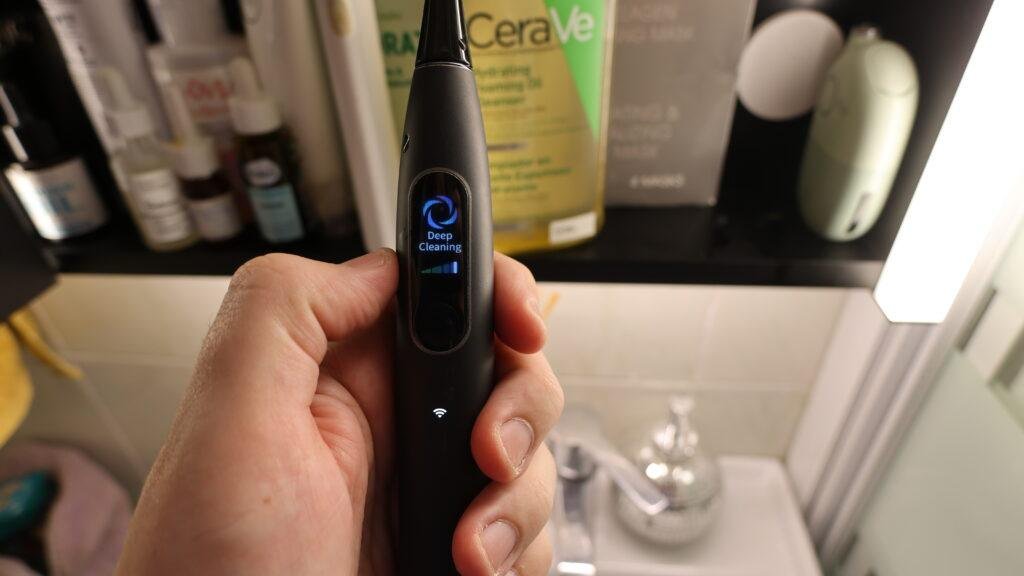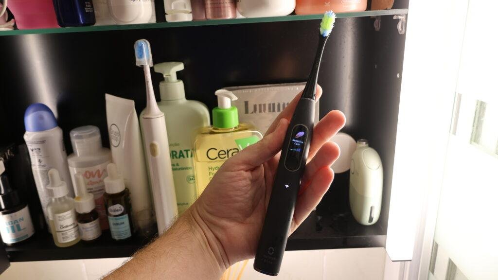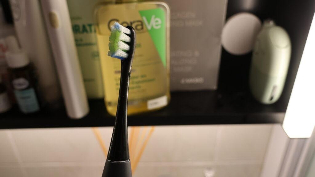 Lo importante en un cepillo no son las revoluciones por minuto ni los nombres grandilocuentes que le pongan al motor, sino la sensación al usarlo, y el X Elite 10 limpia realmente bien. La vibración es estable, controlada y sin ese temblor hueco típico de los modelos económicos. Notas potencia, pero no agresividad, algo que se agradece cuando vienes de usar cepillos que parecen querer arrancarte la encía. Comparado con los modelos chinos que había tenido por casa —Xiaomi, Soocas y compañía— el salto es evidente: más densidad de cerdas, más eficacia por pasada y una sensación general de producto más serio. No llega al refinamiento quirúrgico de un Sonicare de gama alta, pero está más cerca de lo que esperaba.