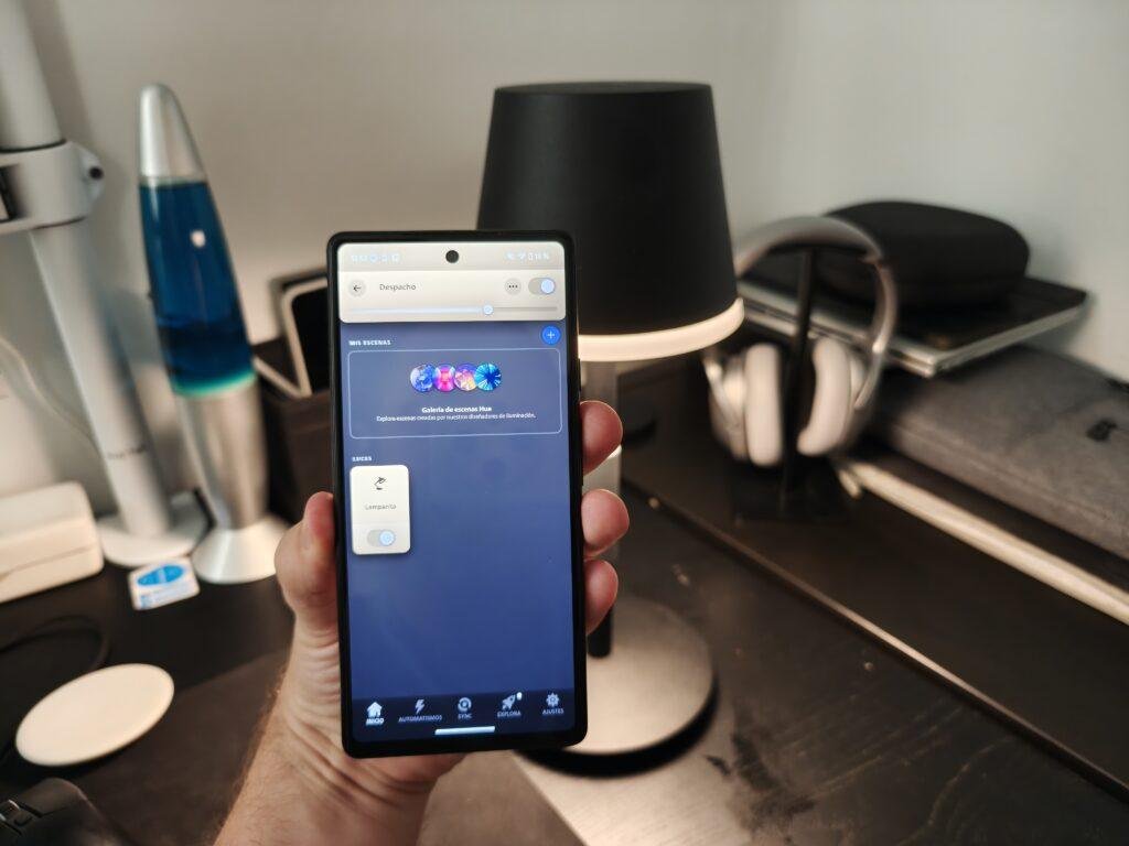 Todo este control se puede gestionar por Bluetooth si solo tienes la lámpara, pero si ya dispones del Hue Bridge, el potencial se multiplica: puedes controlar las luces desde fuera de casa, conectar más accesorios y tener un sistema domótico mucho más robusto. Además, es a través de la app y el Bridge como la conectas a Alexa, Google Assistant o Apple HomeKit para controlarla con la voz.
